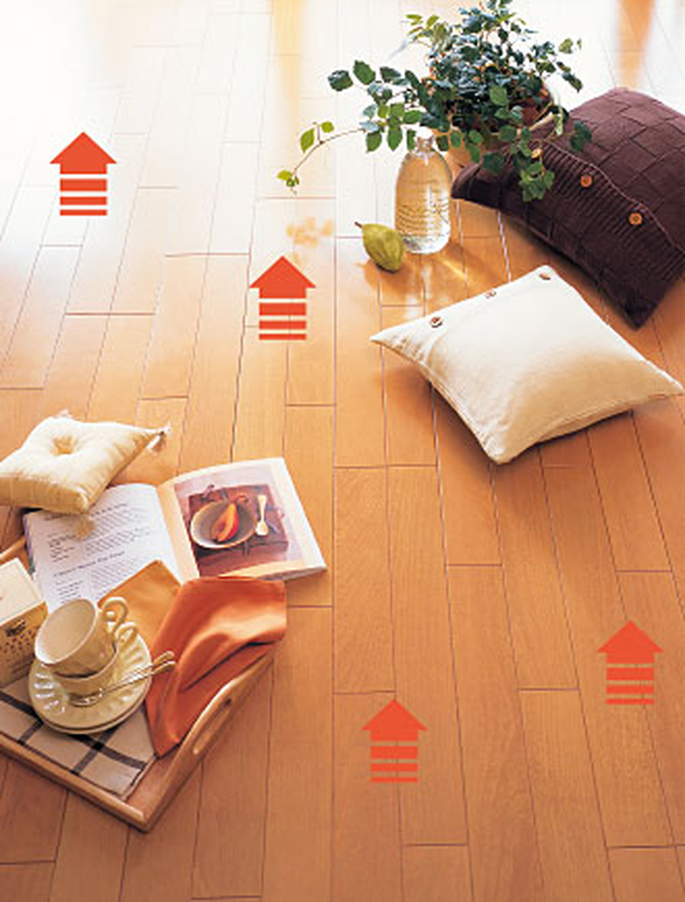 床材の下に敷いたパネルにガスで沸かした温水を循環させる為、低温やけどの心配も少なく安心