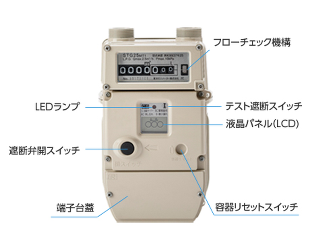 「圧力が低下した時」や「大量漏えい」の遮断表示の場合は、当社の点検を受けてください。